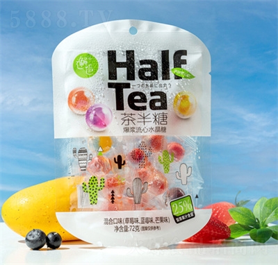 茶半糖爆漿流心水晶糖兒童果汁軟糖水果味糖